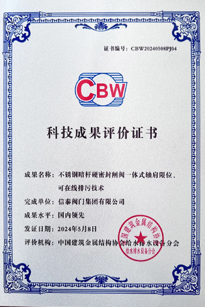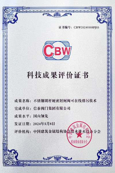 此次获得科技成果评价证书,是对信泰过去努力的肯定,更是对未来发展的鼓舞。我们将继续坚持科技创新的发展战略,不断推动产品的升级换代和技术创新,为阀门行业的持续发展和进步贡献更多力量。
