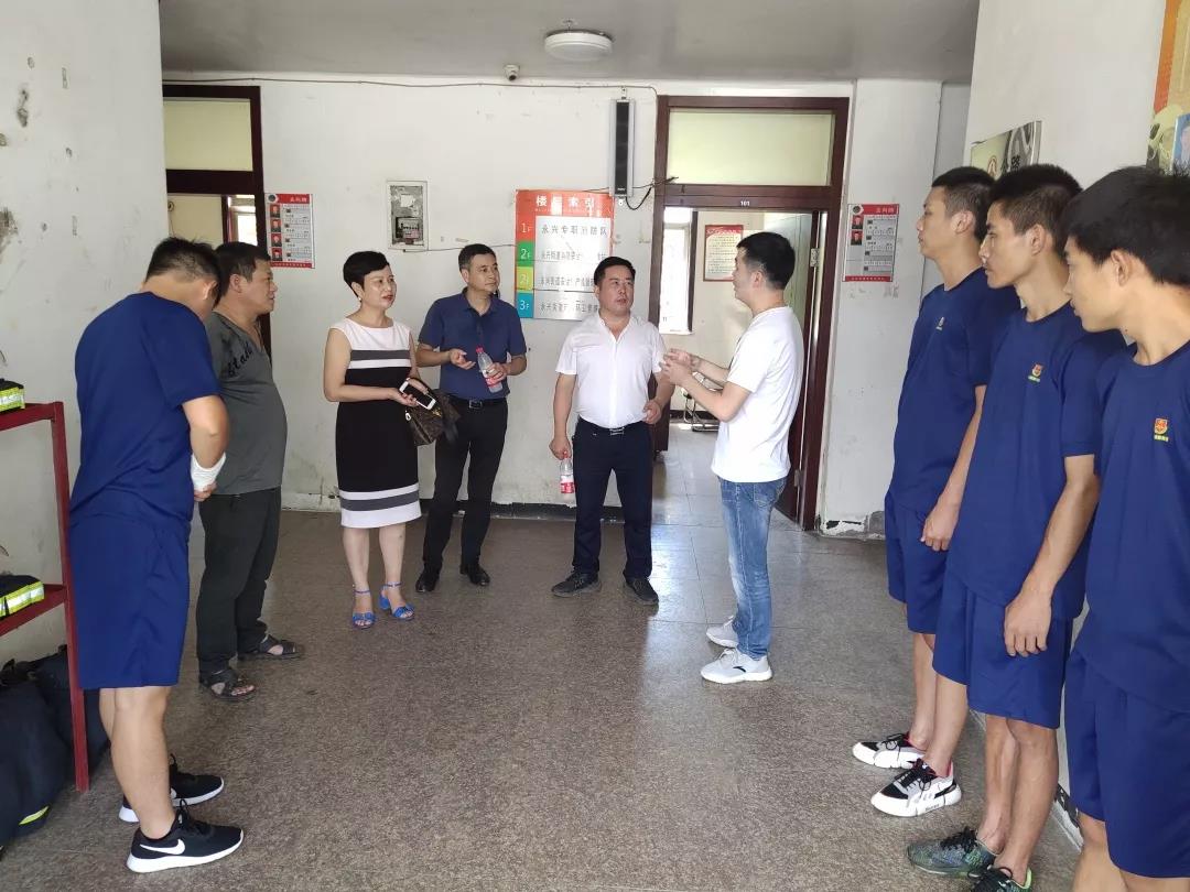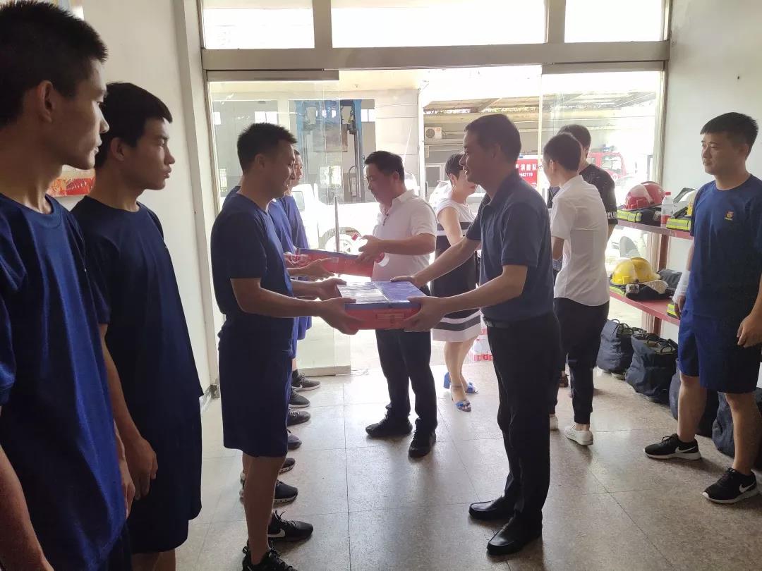 7月31日上午,永兴商会会长张德飞、党建指导员张华燕、监事长胡良飞到永兴街道消防队慰问,向他们送上消暑慰问品,为炎炎夏日中仍然坚守岗位的消防官兵送去一丝清凉。