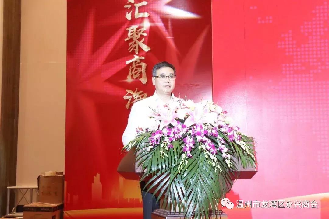 永兴街道办事处主任吴海滨做了讲话,并提出了三点要求:一是企业要紧抓机遇,争创“一流业绩”,二是商会要搭建载体,争创“一流商会”,三是街道要优化服务,争创“一流营商”。